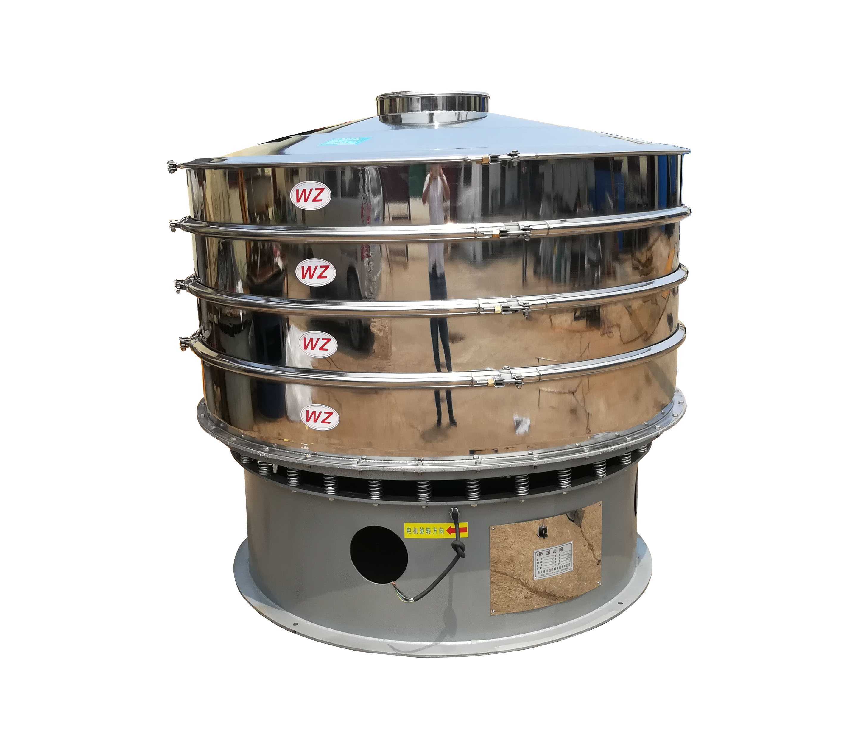 3、在旋振篩開機前要去掉底筒上彈簧部位的支撐柱,避免設備啟動以后整機出現故障。我們曾多次遇到初次使用本類型振動篩的用戶,都是忘記取下支撐柱而造成機體開裂和電機燒毀的情況,因此在這里著重提醒用戶要注意。